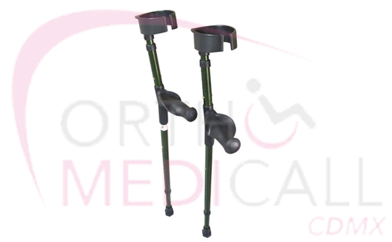Modelo de lujo con doble ajuste que permite modificar la altura del antebrazo al puño y la altura total de la muleta sin dificultad.